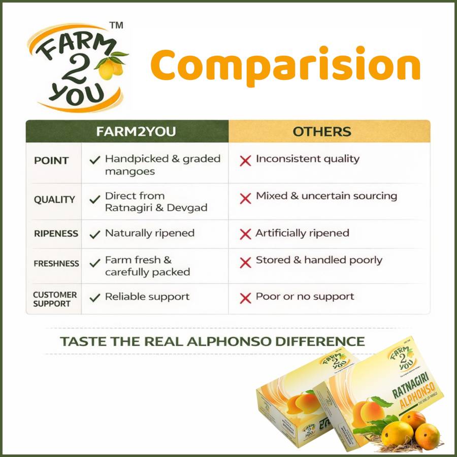 At Farm2You, we ensure that every mango is naturally ripened without harmful chemicals, preserving its authentic taste and nutritional value. Carefully packed and delivered fresh to your doorstep, these mangoes bring you the true essence of the Konkan region.